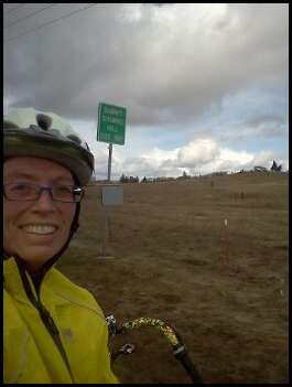 The downhill was glorious. There is a speed around 33 mph where I find I can’t keep up, and I have to coast. I was above 30mph much of the way, with views of the entire fruit valley and Mt. Adams, and suddenly, the downhill was over. There was a good slog of an uphill, and I found my very favorite sign in biking: